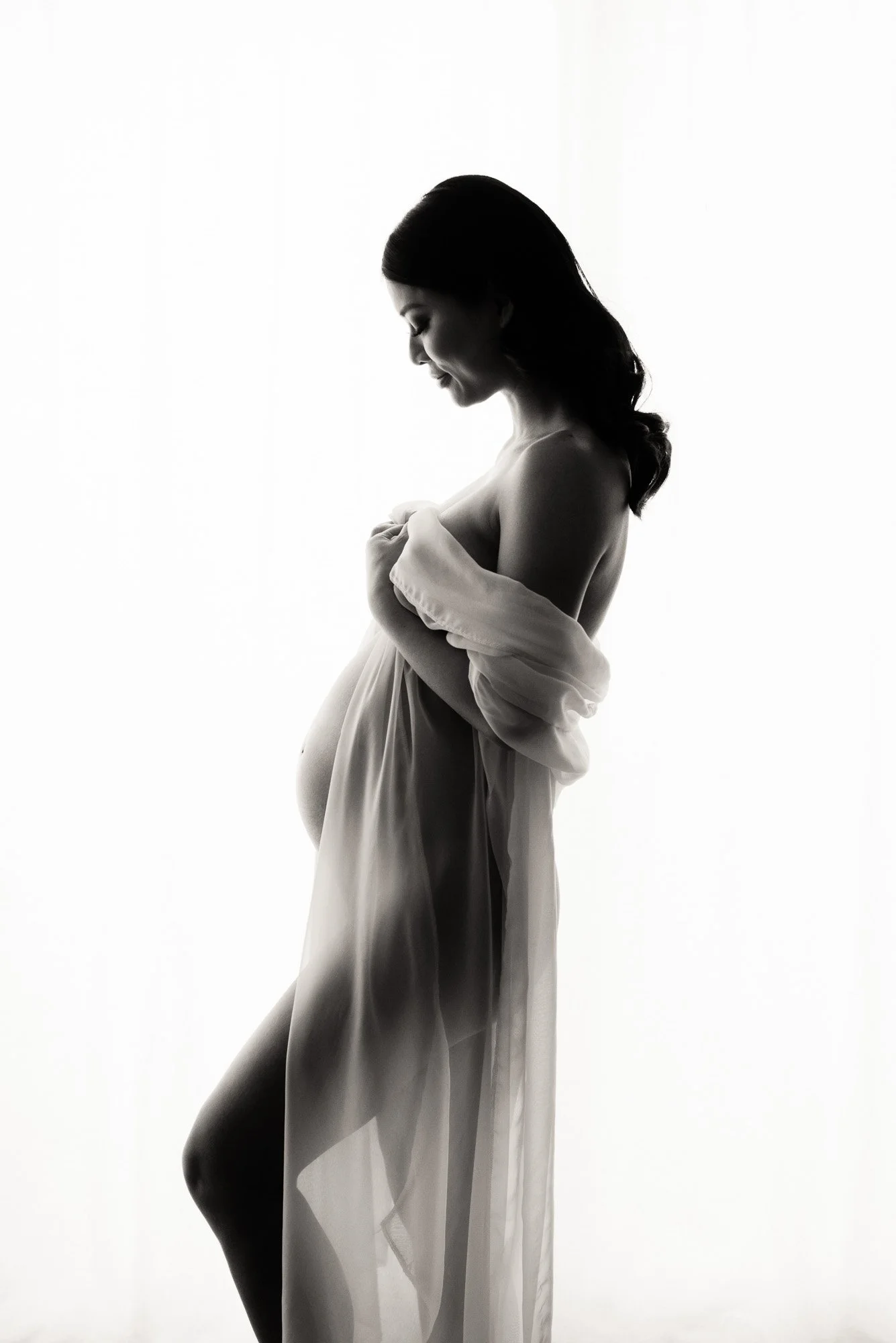 Women often wonder what to wear or bring with them during their boudoir maternity shoot. It’s best not to wear anything tight that will leave marks on your skin before the shoot. It is good to take with you anything you wish to try out or feel comfortable with. A sarong or scarf to wrap around your belly, underwear, and bra, or any lingerie works well as a maternity boudoir outfit. I also have a few dresses to share and some nice fabric. It’s a gift to yourself to see how beautiful and radiant you look at this time and have something so special as boudoir pregnancy photos taken. Click here to see a recent one of my Boudoir Maternity Photoshoots.
