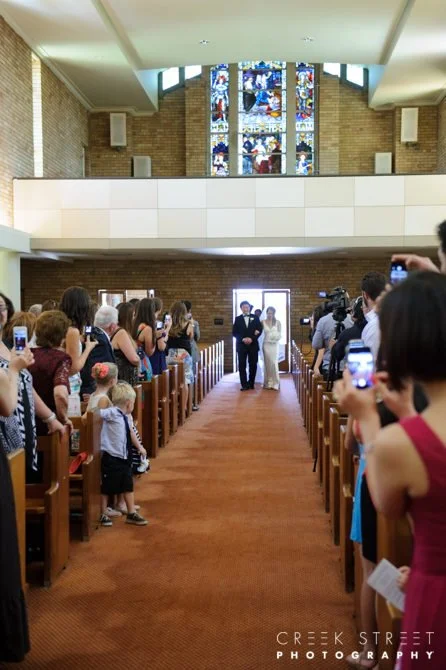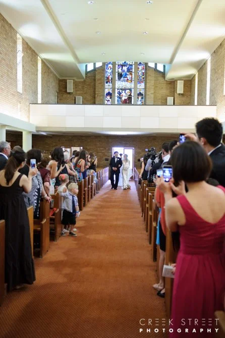 Of to St Joan of Arc Catholic Church Haberfield for the wedding ceremony. After a lovely ceremony we used the front of St Joan of Arc Catholic Church for a big wedding group photo of everyone and the garden of the side for the family photos.