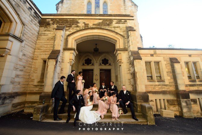 Lucy and Jake held their wedding at the beautiful International College of Management, Sydney. The wedding ceremony was held in grounds of St Patrick’s Estate, and the wedding reception was held in the Great Hall inside the ICMS.