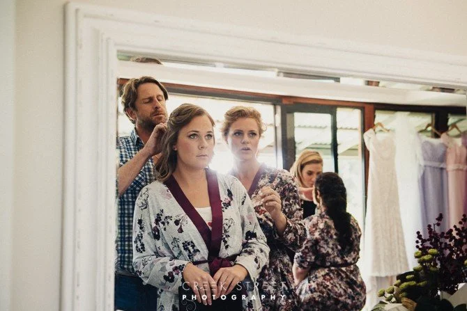 Charles and the boys were getting ready for the wedding at a hidden away in the bush cabin called Kookawood. Kookawood was only 5 min drive from Seclusions. I was sure I was lost as there was hardly a road at all, but what an amazing cottage Kookawood is. As you step inside you are transported 100 years back in time. Heavy wood beams, big fire place and deep leather sofas. It also had a amazing view over the Blue Mountains.