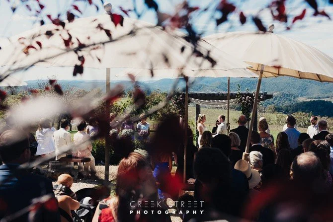 The wedding ceremony took place at a purpose cool wooden circle with a stunning view. What a place to tie the knot.